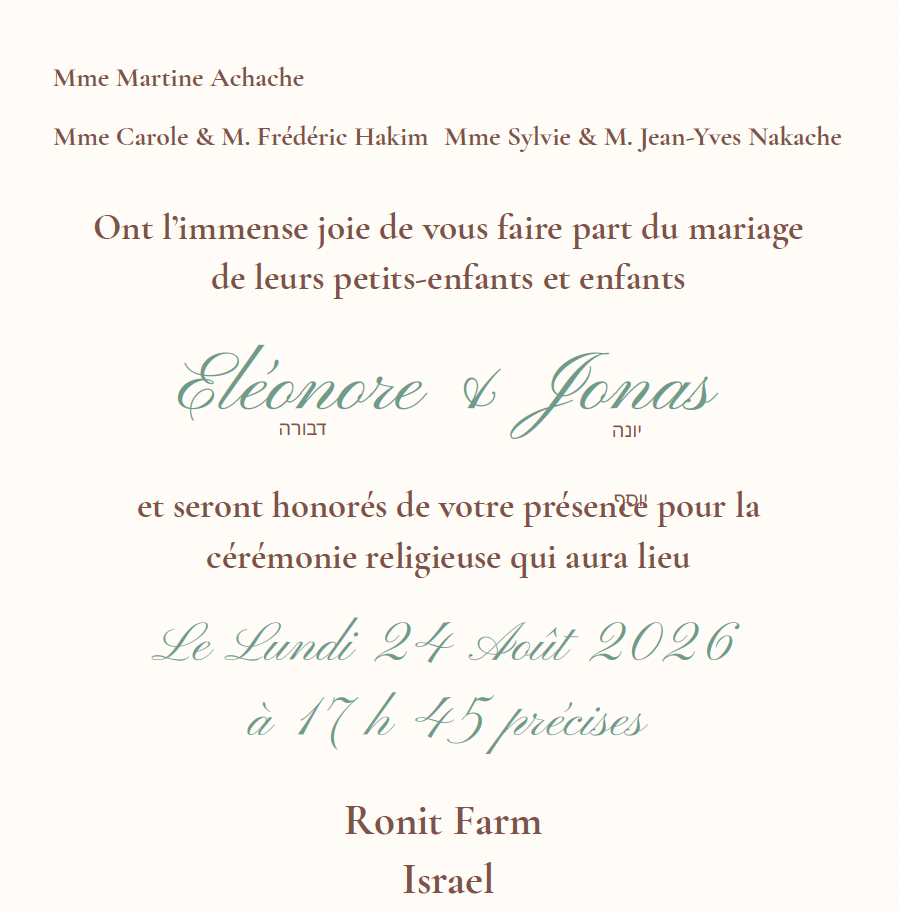 Des navettes vous attendront devant l’Hôtel David InterContinental à 16h30 précises afin de vous conduire vers la cérémonie religieuse.